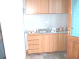 Entrando, si accede in una cucina abitabile con angolo cottura, tavolo e sedie;